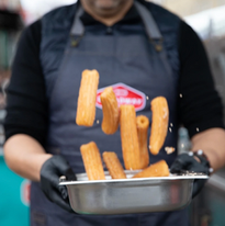 Essentially, our journey began in Spain, where we learned our recipe from the best churro people. We're committed to using only quality ingredients, such as high-protein flour sourced directly. While tap water could be used, we opt for still water. Another key element is our oil, which we change every three uses to ensure optimal taste. Ultimately, our passion drives everything we do. When you visit us or we do an event for you, expect nothing less than a delightful medley of flavors served with a smile by our staff.